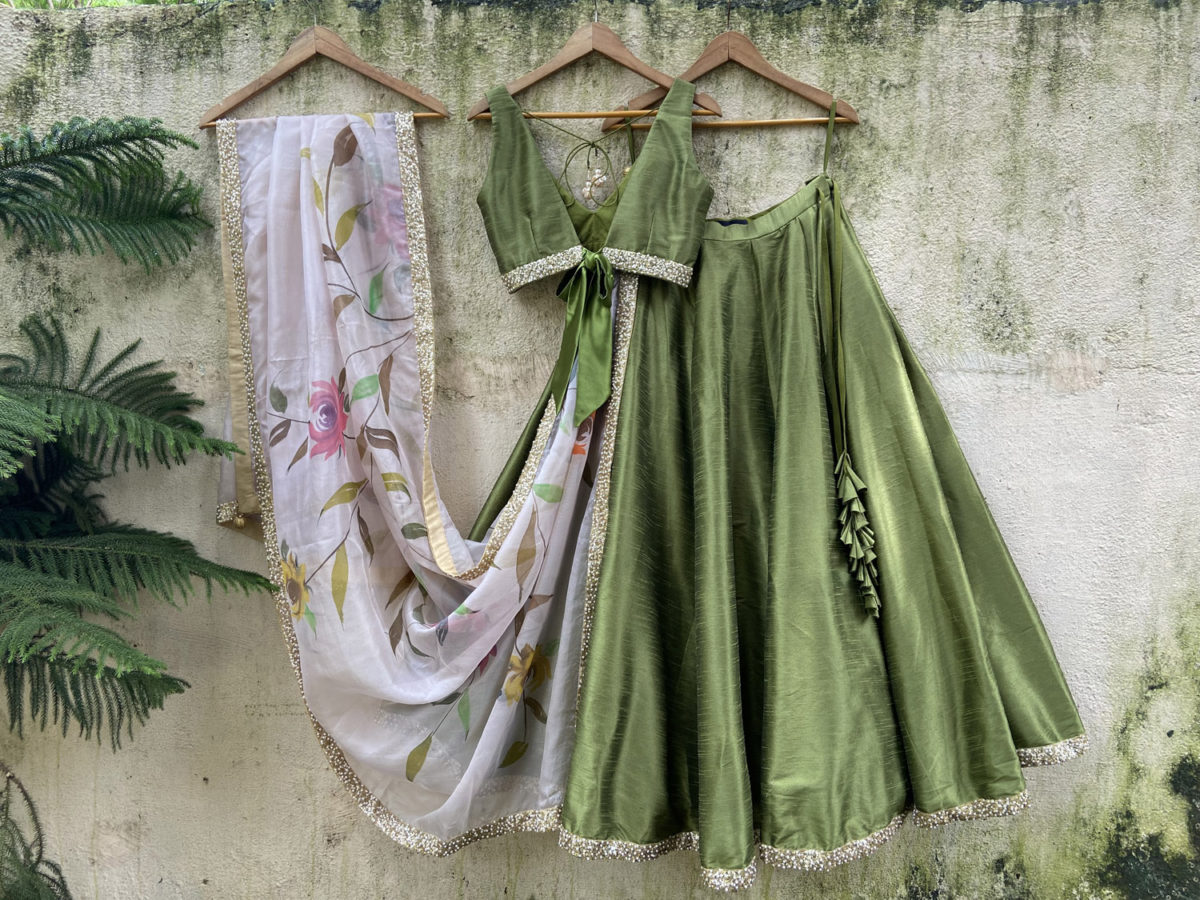 Moss Green Lehenga Set with Hand Painted Dupatta