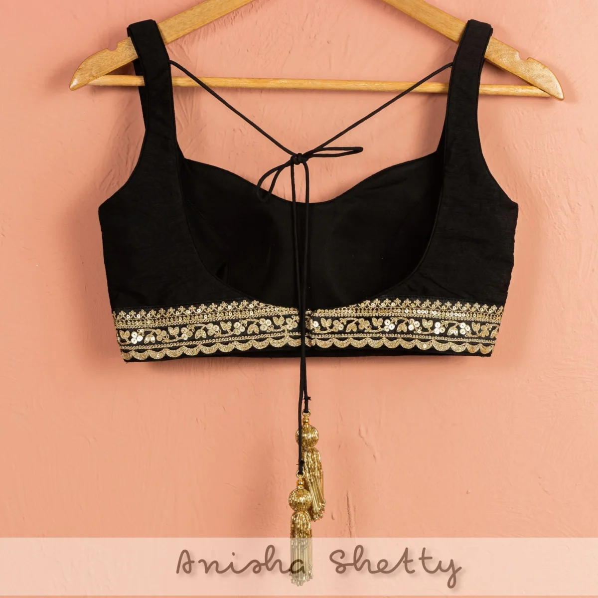 Black Stonework Silk Lehenga With Black Zari Blouse