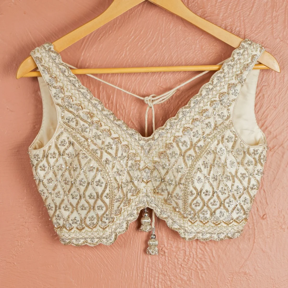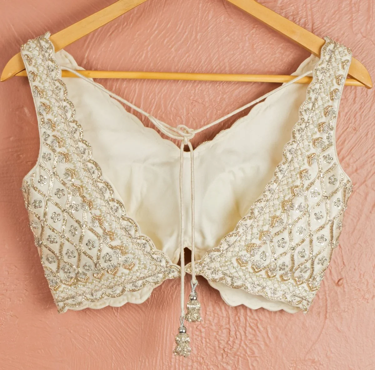 - Saree: Georgette, Saree Emb: Sequin Work, Blouse: Net & Satin, Blouse Emb: Pearl Work & Bead Work