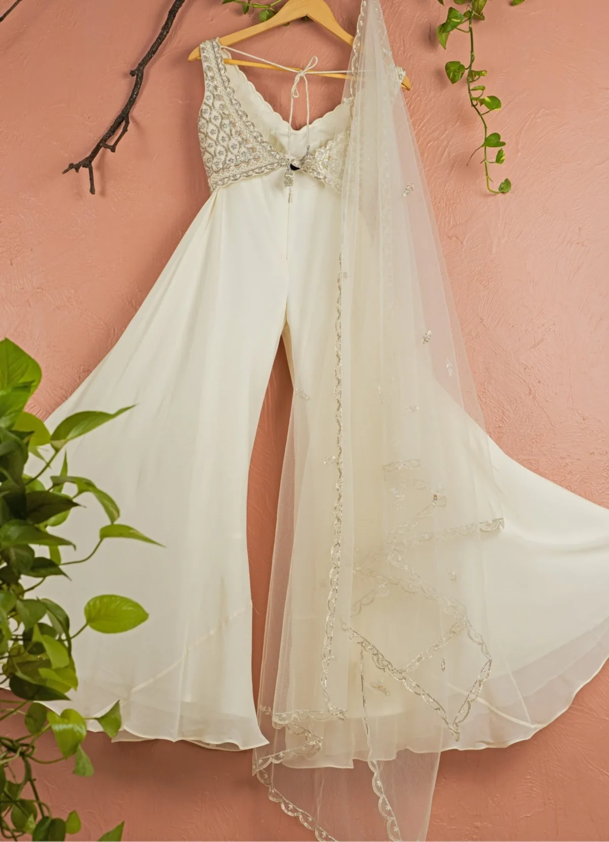 Ivory Sharara With Ivory Zardosi Blouse And Dupatta