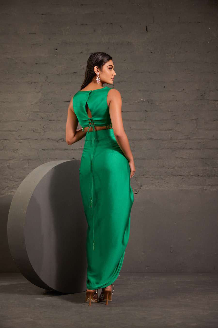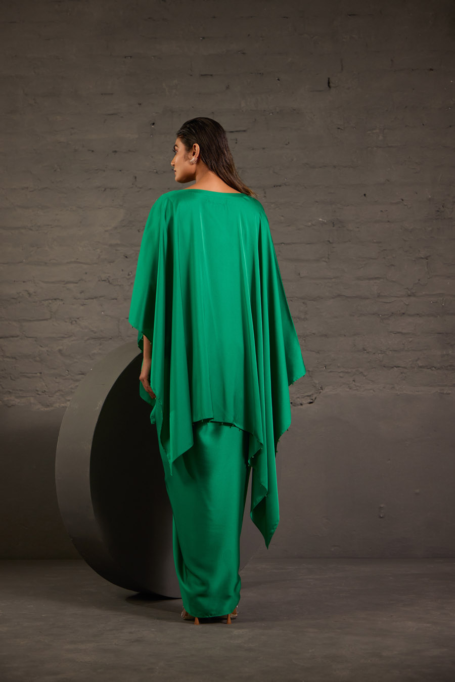 Emerald Green Flowy Kaftaan With Drape Skirt