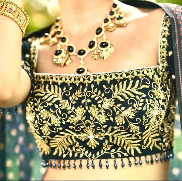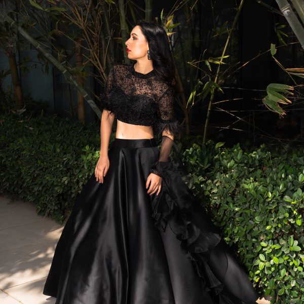 Price range: £424.00 through £590.00Price range: £212.00 through £295.00 - Black Silk Organza Blouse paired with Organza Lehenga and Organza Ruffle Dupatta.