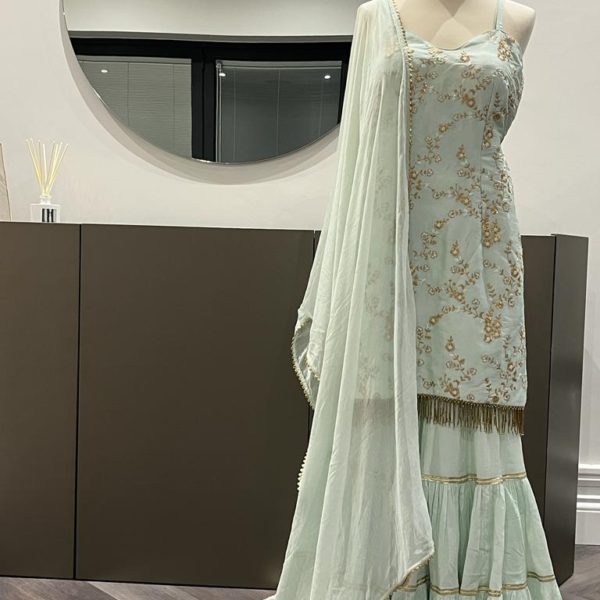 Designer Mint Sharara Set