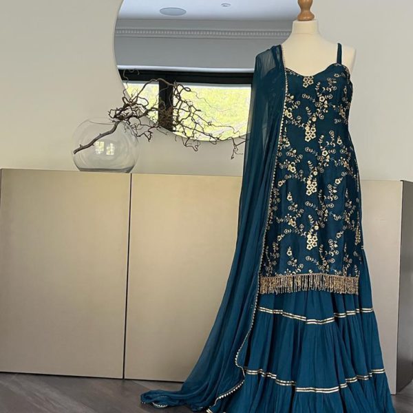 Designer Teal Blue Sharara Set