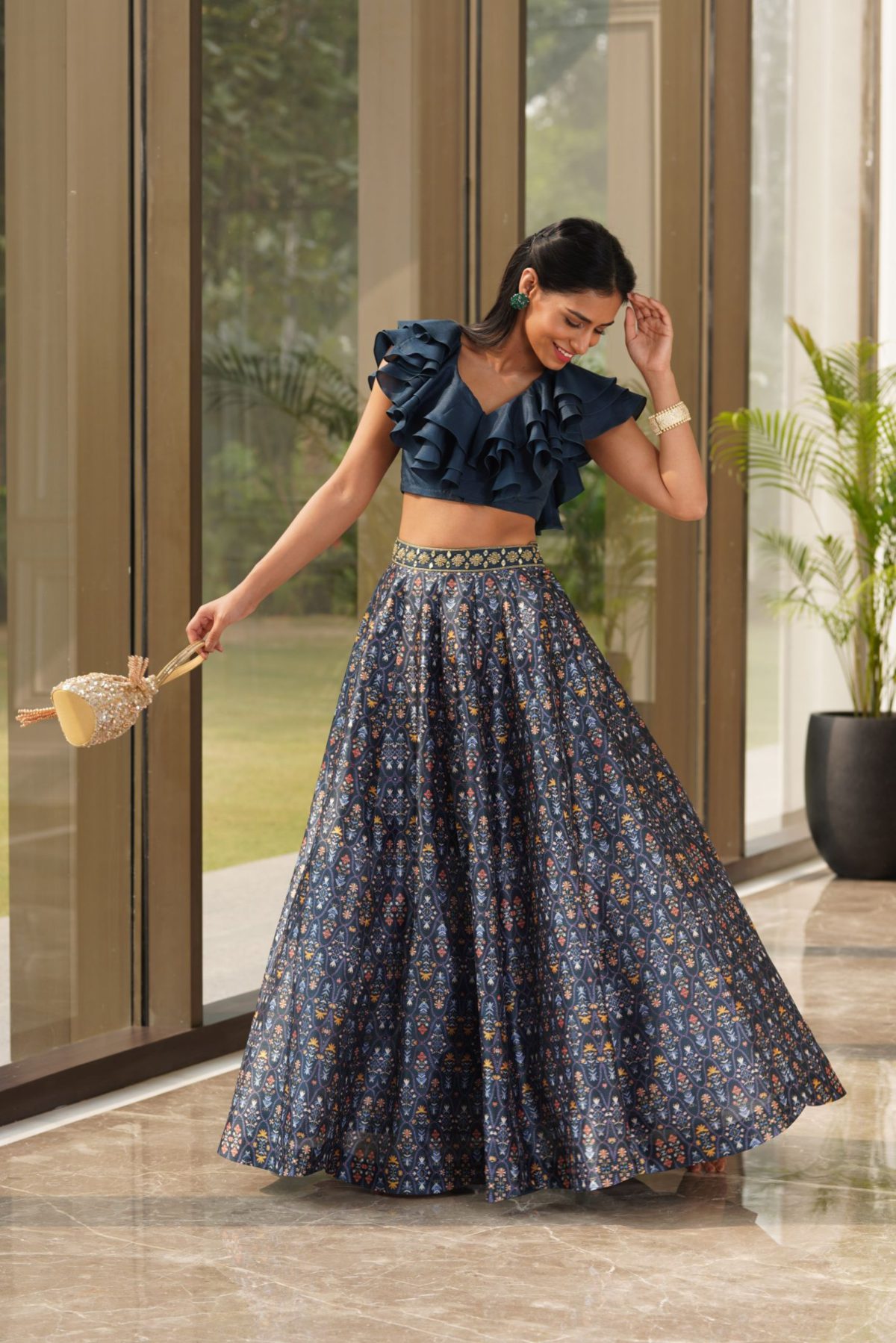 Blouse length: 15in. Cropped or Bralettes: 13in. Skirt length max: 44in. Anarkali / Gown: 56in.