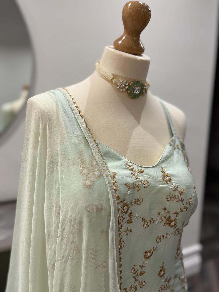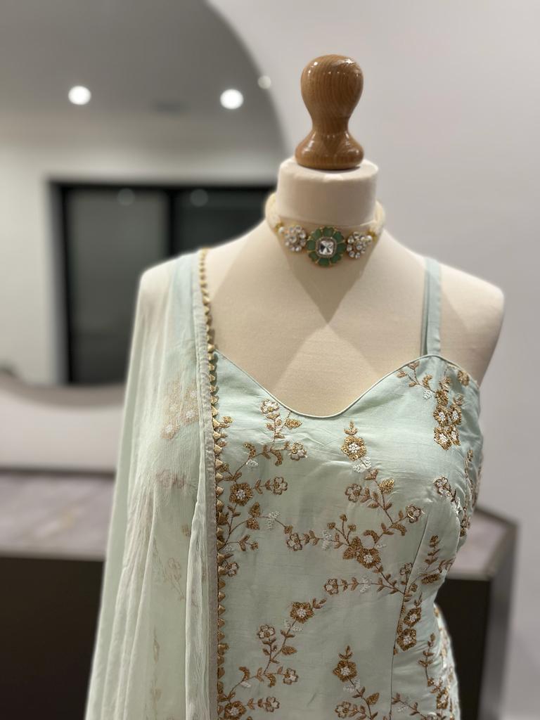 Blouse length: 15in. Cropped or Bralettes: 13in. Skirt length max: 44in. Anarkali / Gown: 56in.