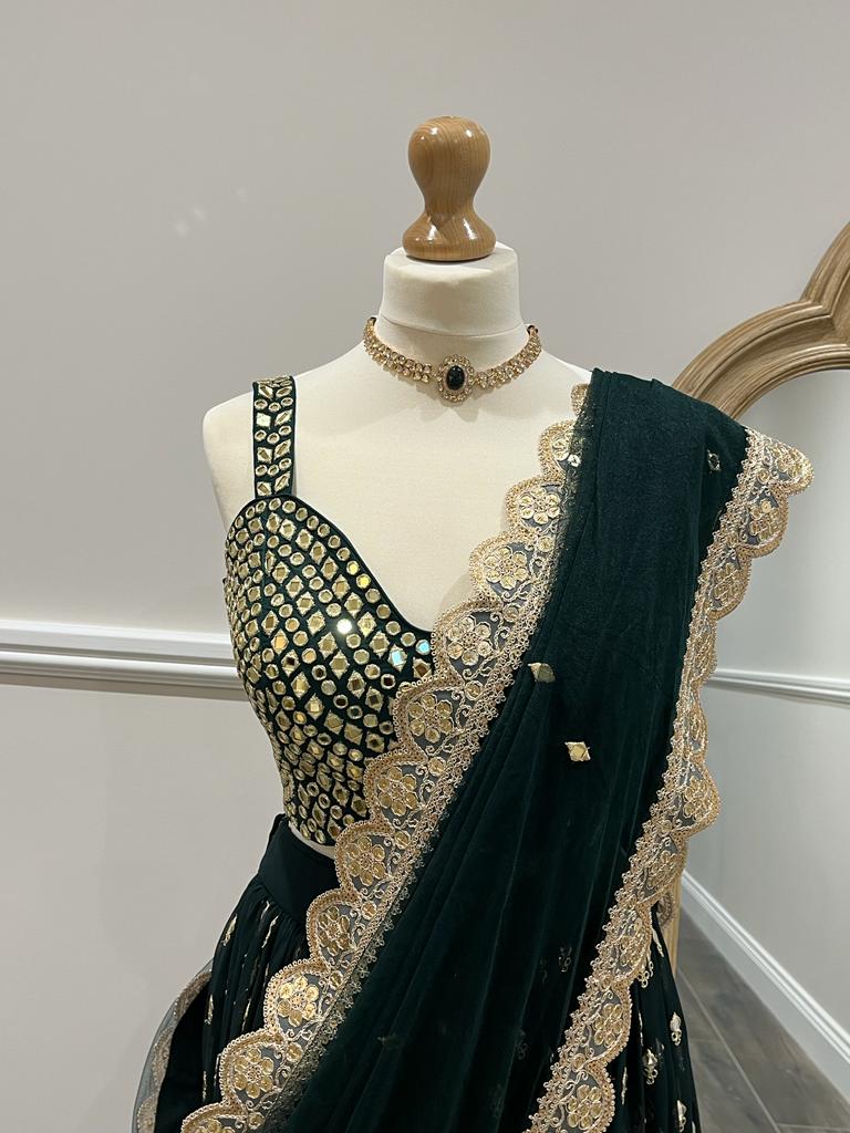 Forest Green Lehenga Set with Embroidered Mirror Blouse