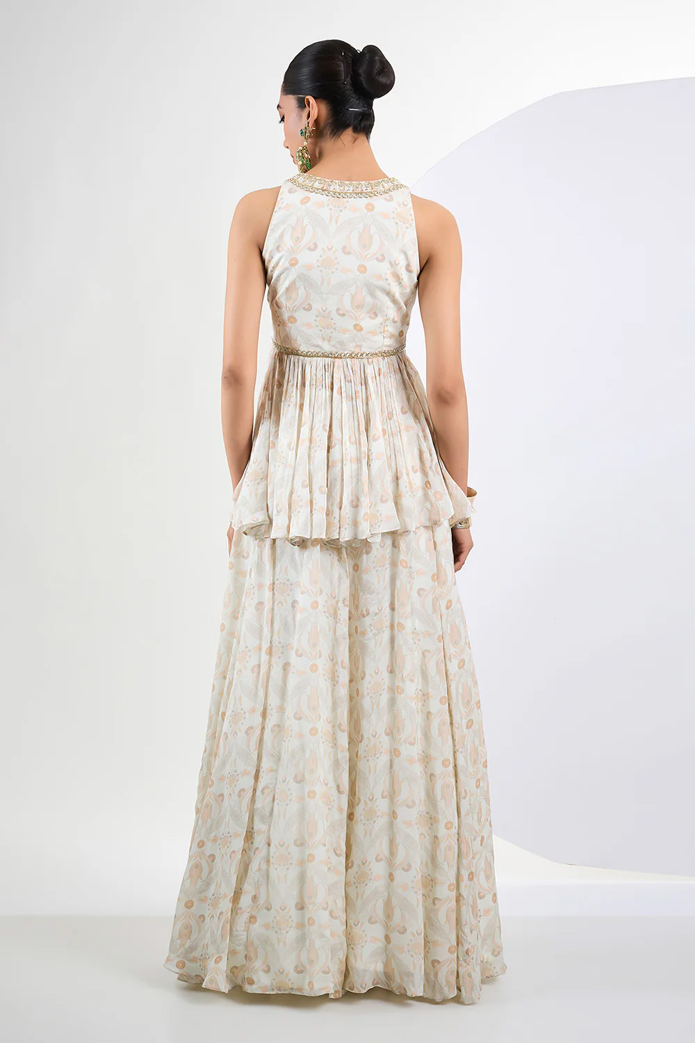 Printed Chinon Chiffon Ivory Sharara Set with Chinon Dupatta