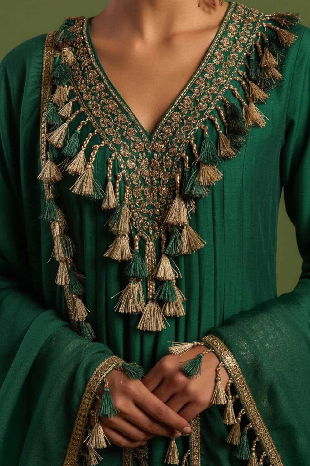 - Green Chanderi Silk Hand Embroidered Kurta Set